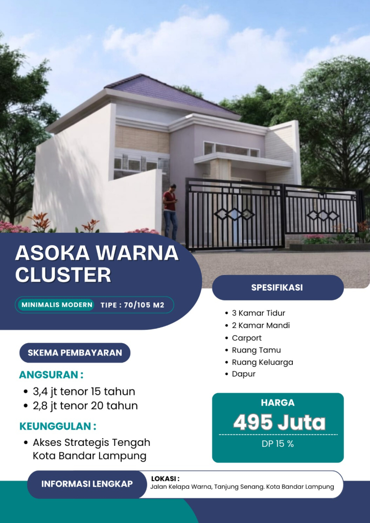 Lokasi Perumahan: Jalan Kelapa Warna, Tanjung Senang. Kota Bandar Lampung